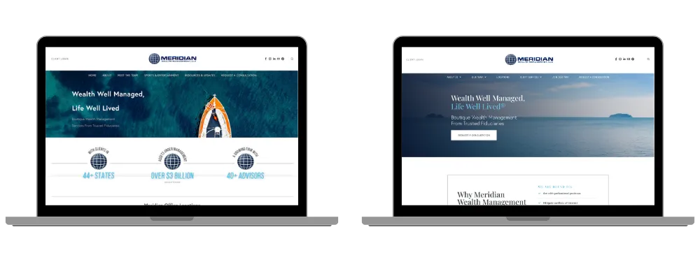 Updated branding, clearer navigation, and reorganized content help visitors immediately see who Meridian serves and why they stand out building confidence early in the journey.